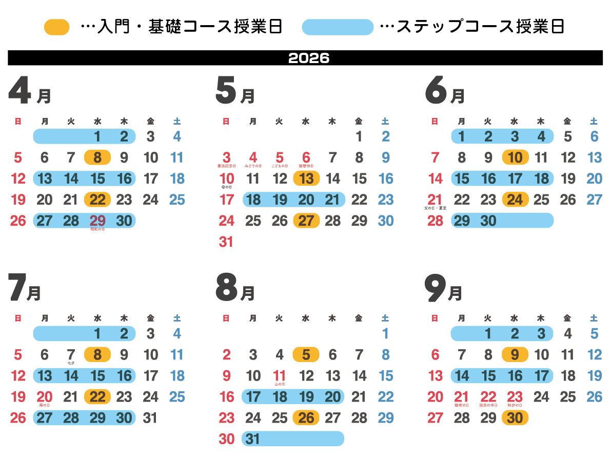 各週、曜日の変更は事前連絡の必要はございません。都合の良い曜日・時間にお越しください。
